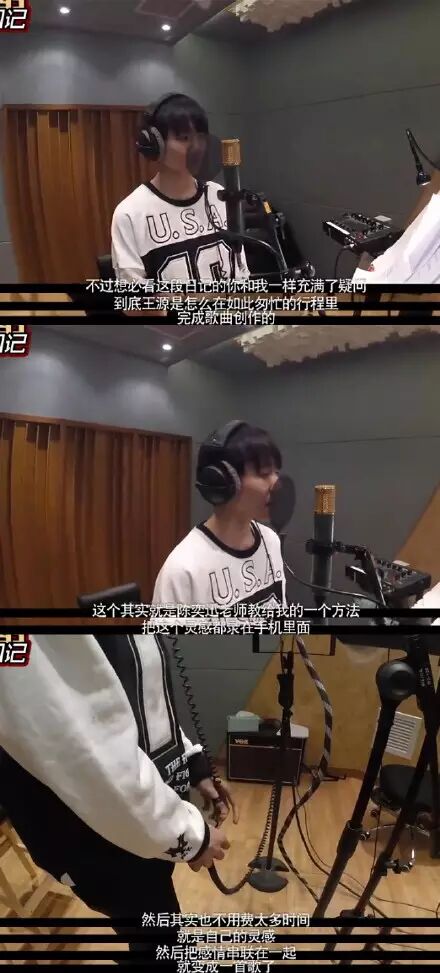 ◆ ◆ ◆ “德者情之端也,乐者德之华也。乐者,所以象德也” ◆ ◆ ◆ ◆ ◆ 一首歌曲的诞生 作词、作曲、和声编写、编曲、录音、混音、母带 歌曲意境的想象及灵感是谱曲关键,灵感稍纵即逝,很多歌手都会随身带有记录灵感的工具,或是简单的笔记本,或是智能的手机软件,这些记录工具帮助作曲家们把他们闪现的灵感保存下来。 可以说,和声、编曲、混音都可以通过学习精进,唯有作曲作词的灵感无法经过后天获得,它是一种天赋,是上天的恩赐。 写下的文字为词,谱下的音符成曲。 和声进行在一首曲子中起到至关重要的作用,它构建起了整首曲子的框架和情感走向。为一首曲编写和声是一件不容易的事情,特别是对于一位新人,它既要用到乐理推导,又需要依靠自己的感觉。这个时候,精通一门乐器是很重要的,尤其是钢琴。 根据作曲的需要,对一首歌的风格、速度、配器进行大致的判断与想象,设计好结构,这就是编曲。 编曲要解决配器问题。即由编曲的人决定都用什么乐器来表现这首歌,每种乐器都用在哪个地方,又充当什么声部。 录音一般由曲作者或编曲人到棚里监棚,以便和乐队、指挥等人及时交流,把握演奏风格。 混音,就是将所有分轨(包括伴奏分轨、乐器、人声等)融合在一起,使最终的成品呈现出剧场演出的立体效果。 对作品的最后一次塑形,制作成数字或模拟的母带。 王源作为组合首位原创 歌手有什么了不起? ﹀ ﹀ ﹀