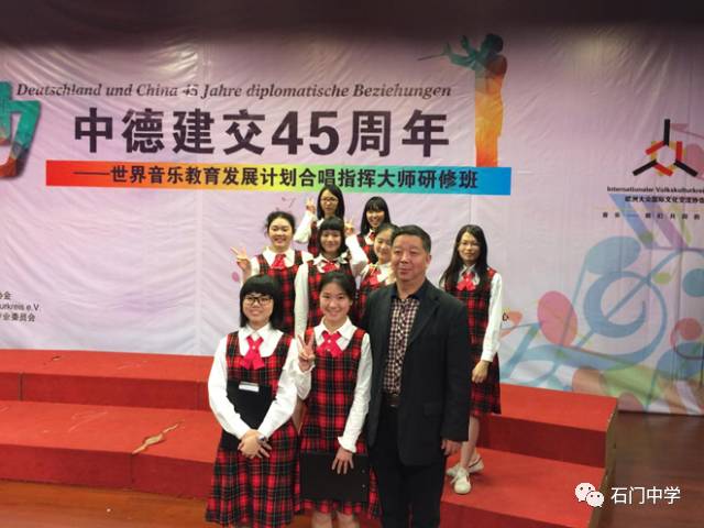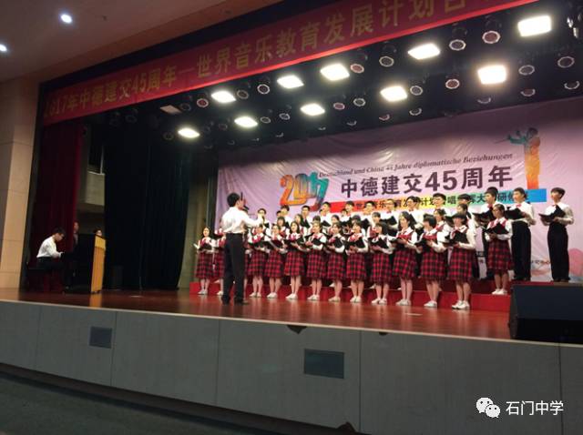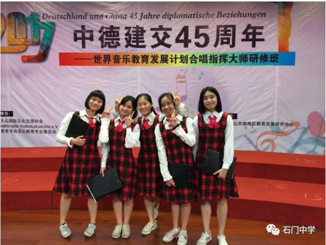2017年1月4日,石门中学合唱团受广东省教育厅及南海教育局的邀请,参加了由广东省教育学会音乐专业委员会举办的 “世界音乐教育计划——2017年中德建交45周年合唱指挥大师研修班”的培训交流活动。