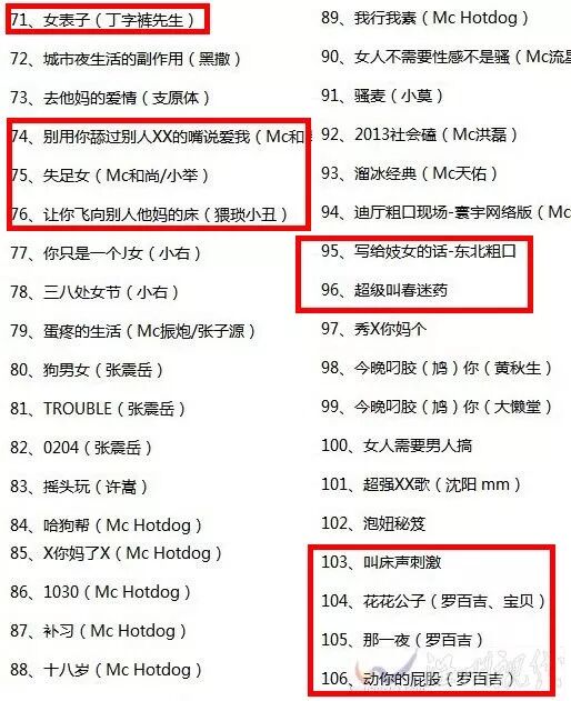 早在2015年8月10日,,要求互联网文化单位集中下架120首内容违规的网络音乐产品。进入“黑名单”的曲目将禁止出现在KTV等点播系统,禁止经营性表演中演出,禁止在互联网上网场所进行下载、复制和传播,禁止以音像制品和电子出版物形式出现。