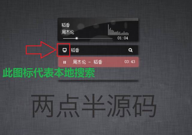 重新界面很简约,只有一个播放控制和一个搜索歌曲框,在搜索框中可选择本地搜索或者网络歌曲搜索,如下图