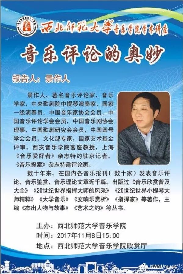 报告地点:西北师范大学音乐学院欣赏厅