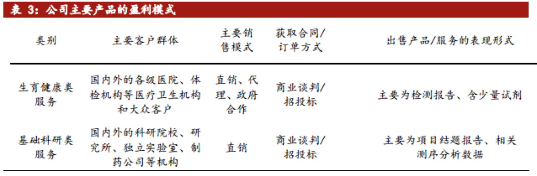 公司成立于 1999 年,是全球最大的基因组学研发机构,主营业务是通过基因检测等手段,为医疗机构、科研机构、企事业单位等提供基因组学诊断和研究服务,其主导产品包括生育健康、基础科学研究、复杂疾病、药物基础研究四大类。(公司公告)
