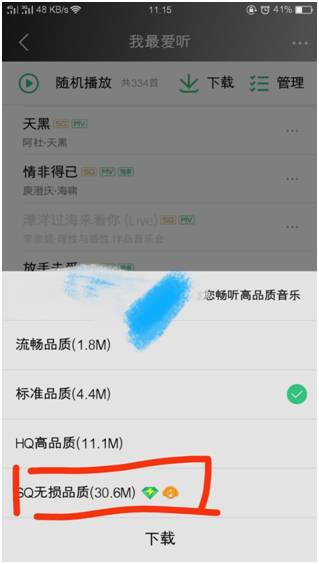有时候甚至想下载个高品质的音乐都不行,我就是想听高品质啊