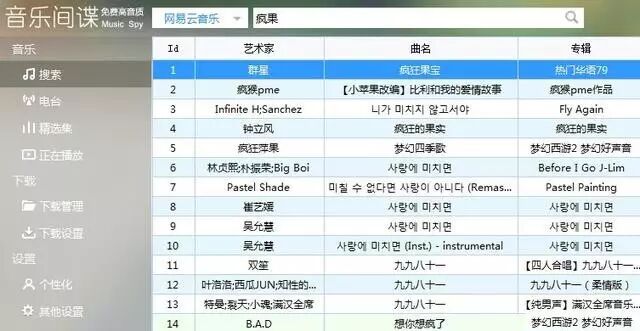 电脑版:音乐间谍(官网已经关闭,不过在各大网站上面还有下载)