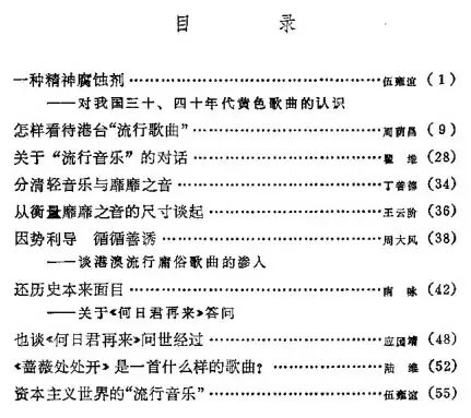 ►目录。从目录来看,书中的内容应该是选取了一部分关于“黄色歌曲”的论文组成的。所以请大家不要笑这本书,人家是很专业,很严谨的。