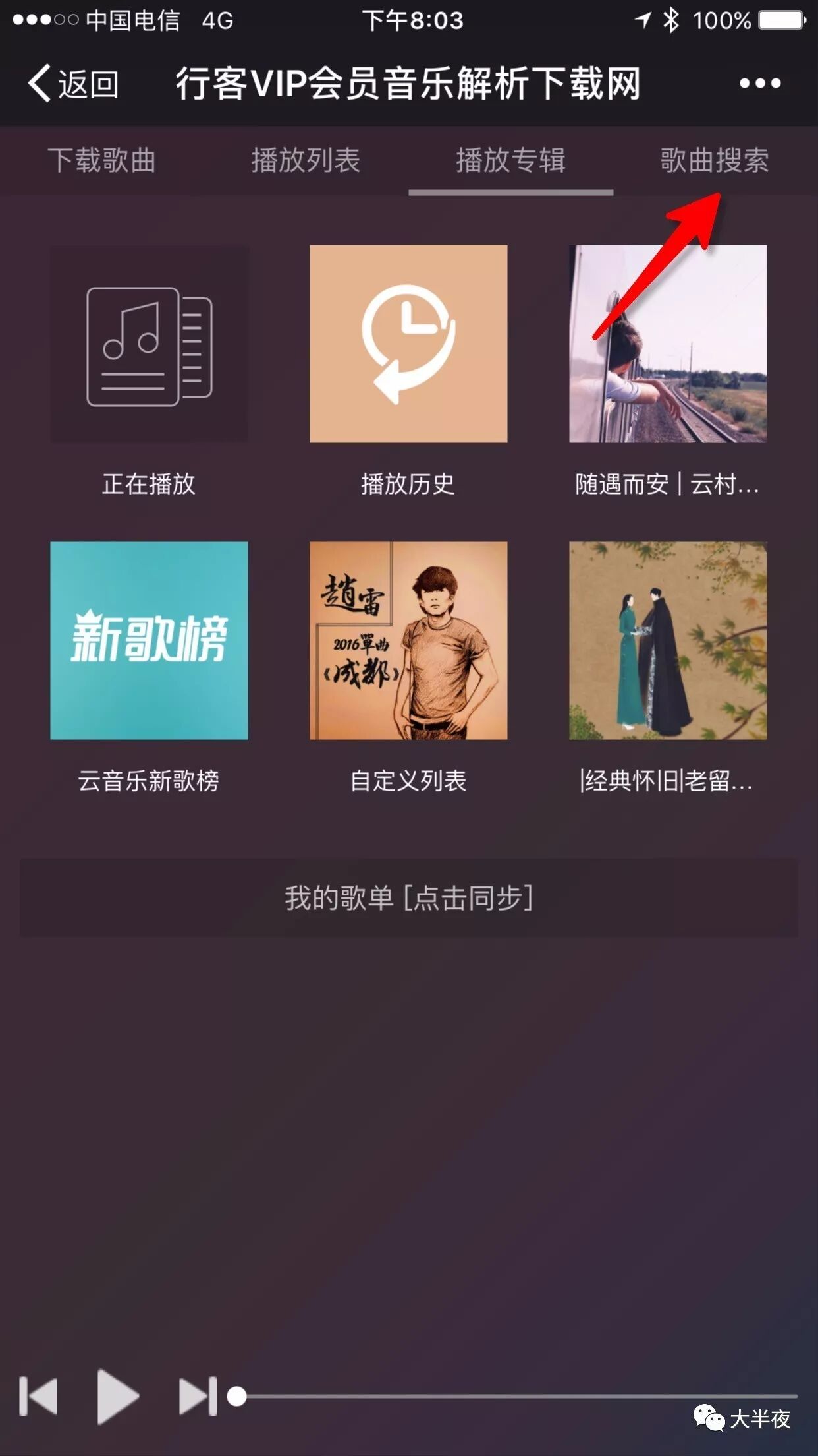 点击它之后,我们进入这个页面,接着我们点击右上角的歌曲搜索。