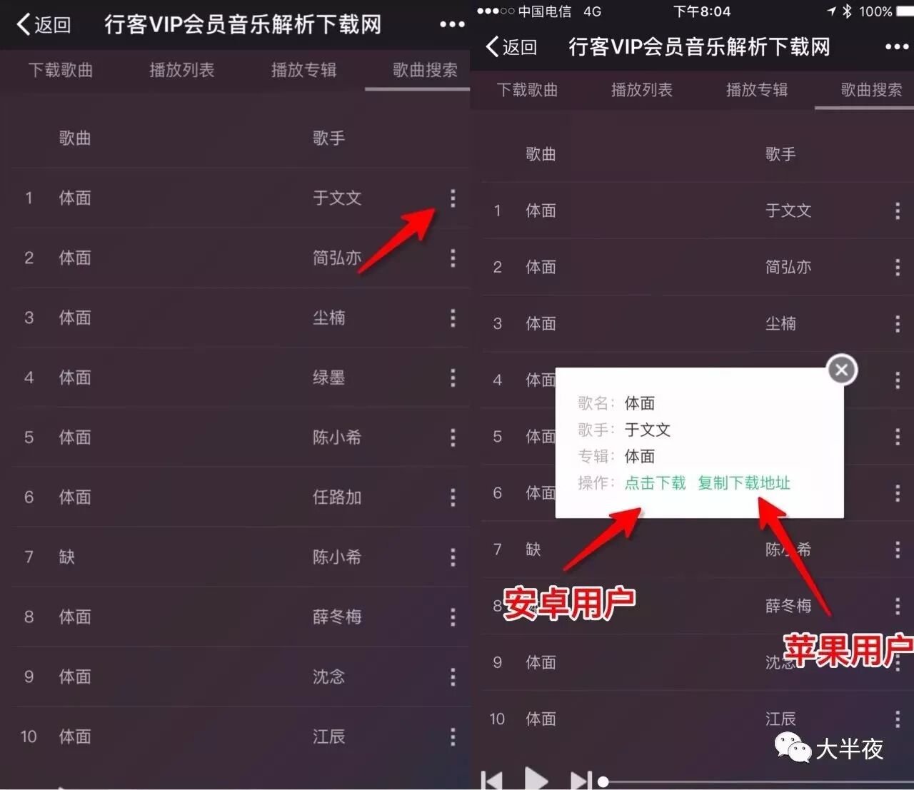 安卓用户点击下载歌曲即可。苹果用户由于无法share出来