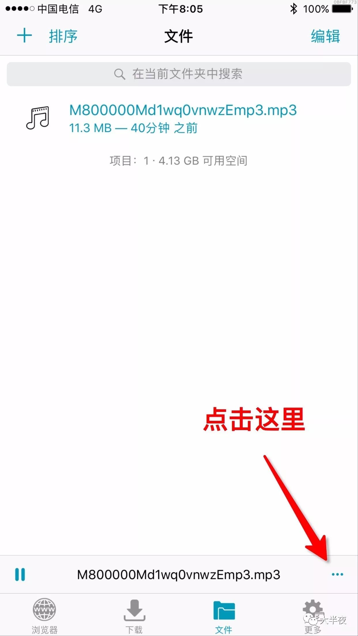 可以保存到icould,百度云,发送给微信QQ好友。也可以发送到其他音乐APP中播放,前提是支持就可以。这样音乐就下载好了,也会一直保存此软件的文件目录下。