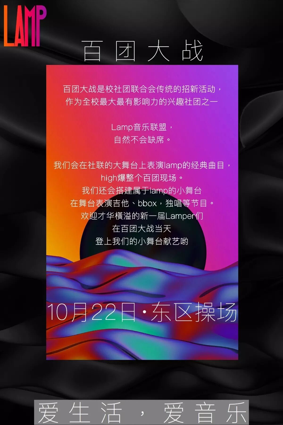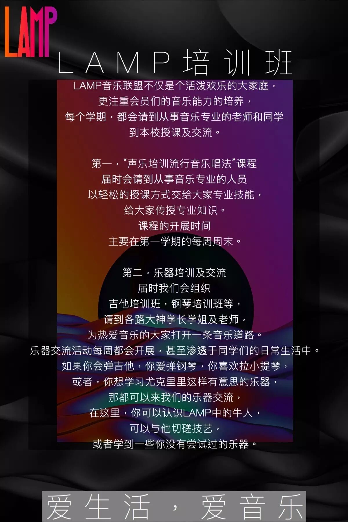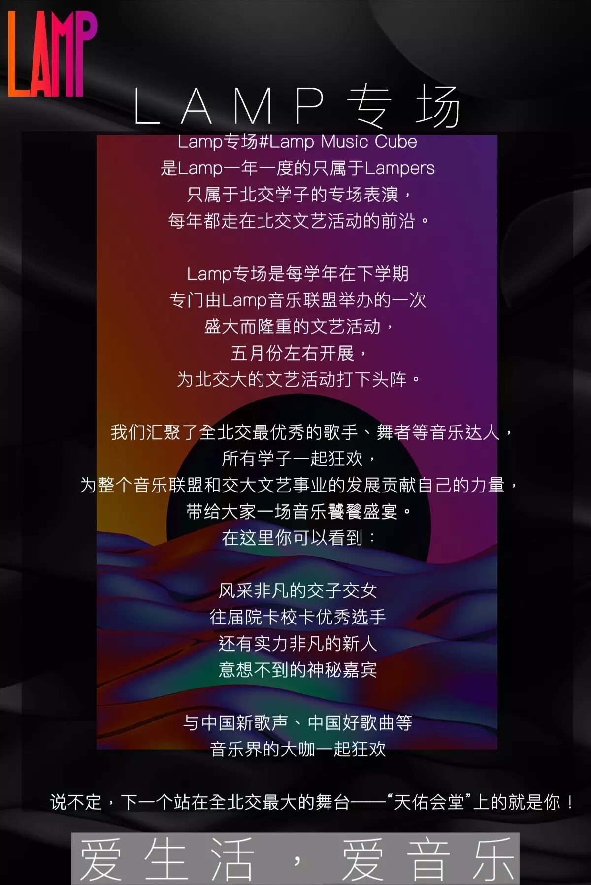 LAMP分为:公关部、宣传部、活动部,演绎部和乐队。除了演绎部和乐队以外,剩下的部门都没有面试,所以,只要你有一颗热爱音乐的心,就能加入我们。微信公众号「北京交通大学LAMP音乐联盟」后续会有详细介绍。