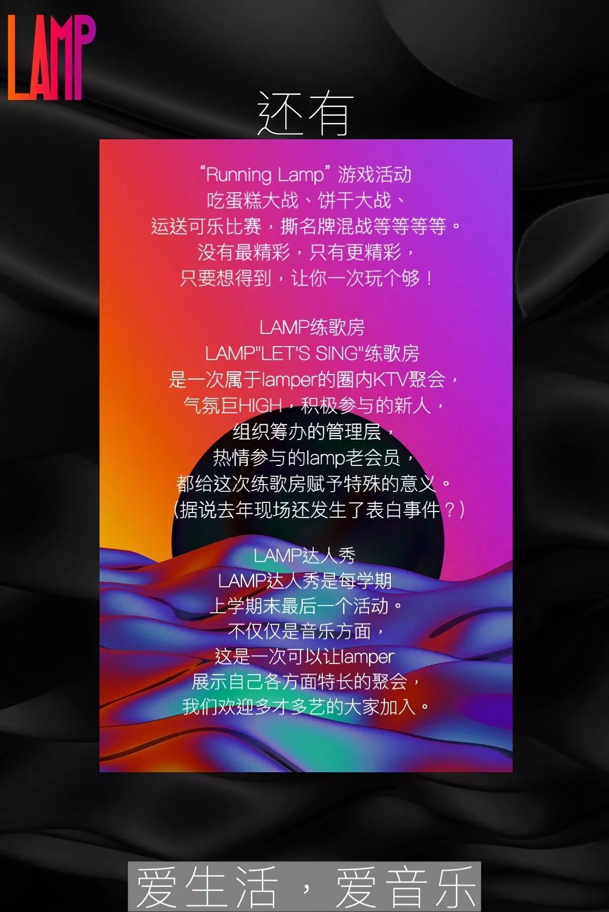 -“不,演绎部和乐队是作为LAMP文艺表演的主力军,在这一方面担任更多责任,但并不意味着只有加入演绎部和乐队才能参与表演,只要你敢想敢做,无论你在哪一个部门,都能拥有上台展现自己的机会。”