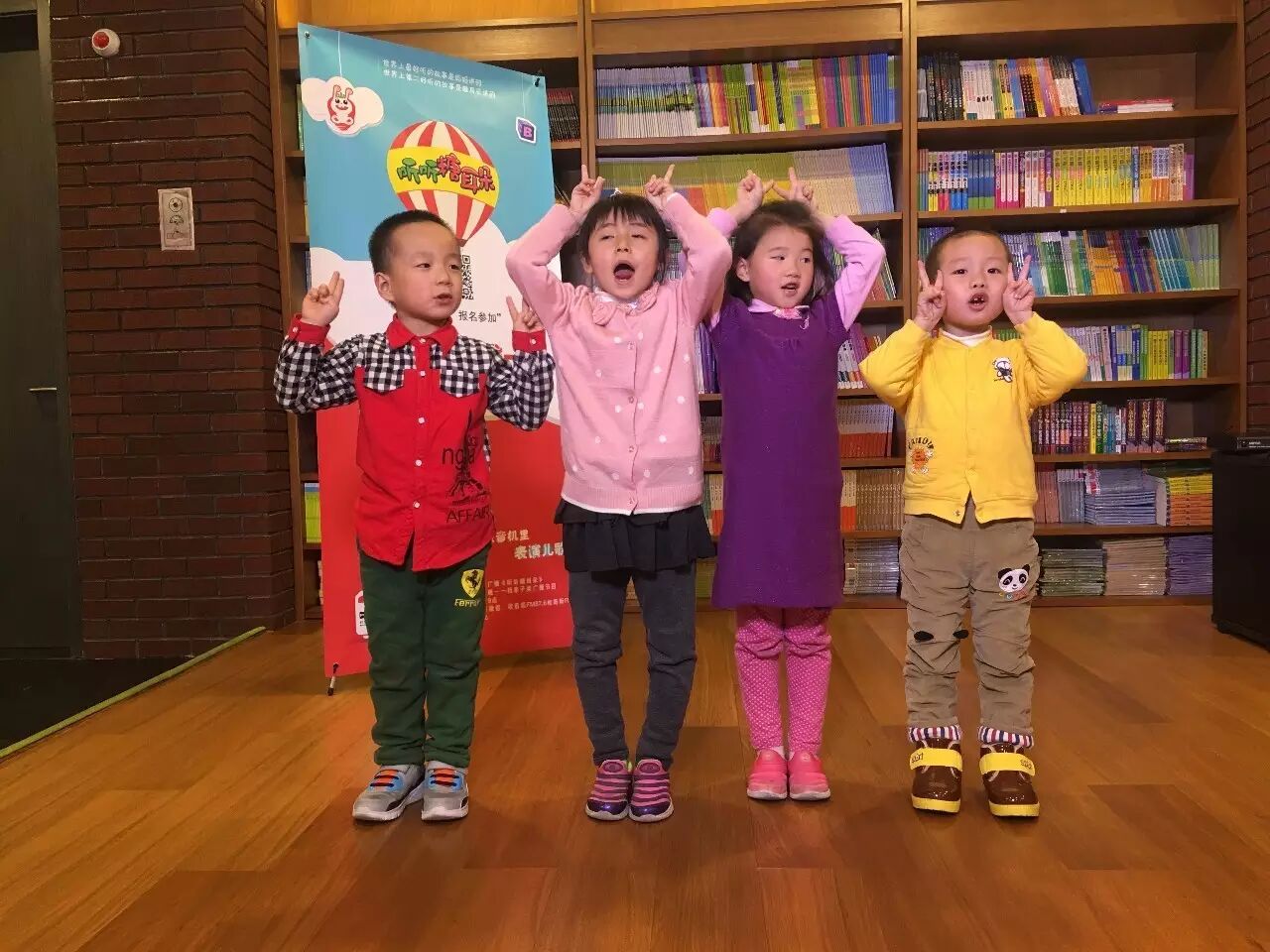 摄像师哥哥将他们的儿歌表演录制下来