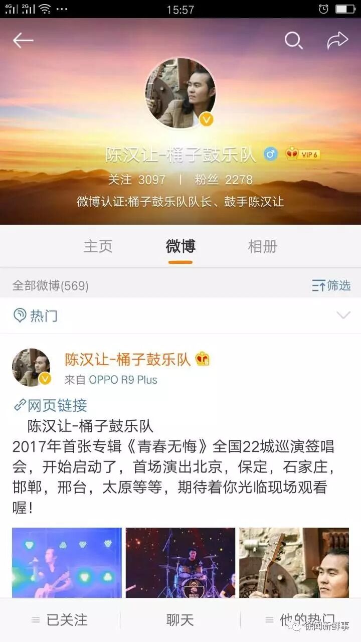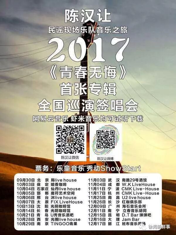 2015年9月剩下陈汉让一个人在坚持,他的乐队音乐梦。一直到现在。