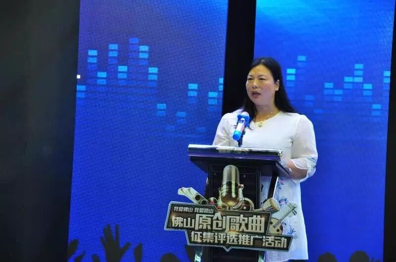 佛山市委宣传部副部长、市文明办主任甘绮霞女士在致辞中说到,佛山是改革开放的前沿阵地,也是文艺创作生产的热土。在音乐领域方面,原创音乐生力军人才辈出,精品力作不断涌现,在省和国家的影响力持续增强。她呼吁大家用歌曲、音符作桥梁,为人民、为时代创作更多的音乐作品,展现佛山城市良好形象,传播人间大爱。