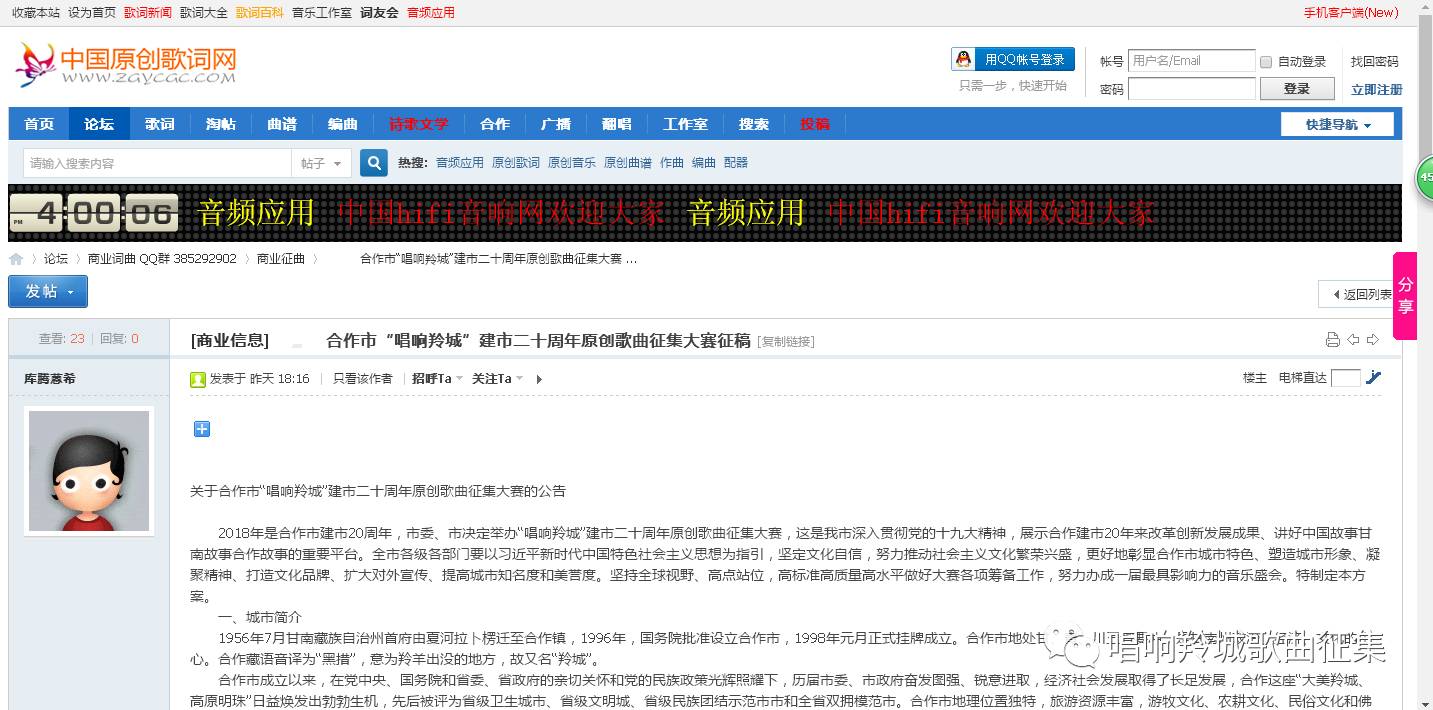 网络推广(online marketing)狭义上讲是指通过基于互联网采取的各种手段方式进行的一种宣传推广等活动,以达到提高知名度的一种效果。同传统广告相同,网络推广的目地都是增加自身的曝光度以及对品牌的维护。目前有20余家网络平台对“唱响羚城”原创歌曲征集活动进行推送,提高此次活动的大众关注度以及知名度,使其能迅速进入大众的视野。