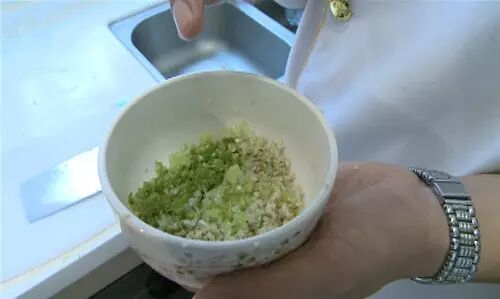 首先把砂姜葱白香菜梗分别剁碎,把它们的香味释放出来