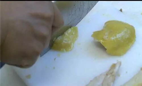过完冰水后,把鸡放凉,就可以切块了。注意,一定要等鸡冷却后切块哦!这样才能保证切开的鸡肉不会散。