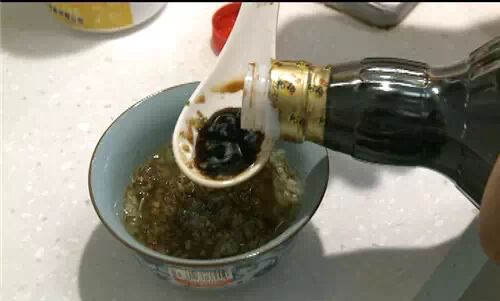 现在开始调砂蘸料,加入两勺生抽就可以了。