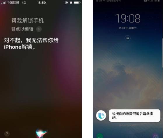 我们使用手机时第一步就是解锁,而对于现在常用的解锁方式,诸如指纹识别或者人脸识别等,在双手不方便时都比较尴尬,比如开车时,比如正在做家务时。而此时如果用语音呼出智能助手,则能更高效且合理的“一心两用”。此前,就有用户分别利用Siri和Bixby解锁手机,Siri总会回答:对不起,我无法帮你给iPhone解锁。而面对三星Bixby,用户只需要利用三星Note8设置一个语音密码,即录入用户自己独特的声音口令后,便可以使用Bixby进行语音解锁。