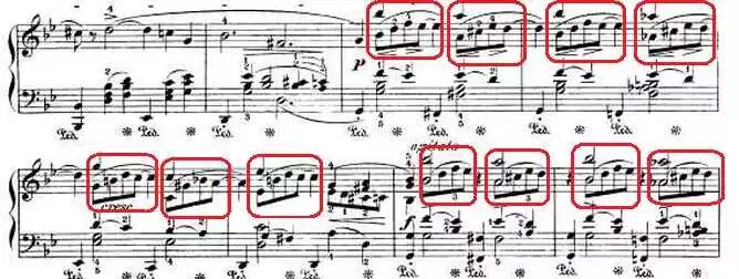 再或者,在比较大型的乐曲中,有些部分是旋律式的,有些部分是动机式的。比如这首肖邦的G小调第一叙事曲: