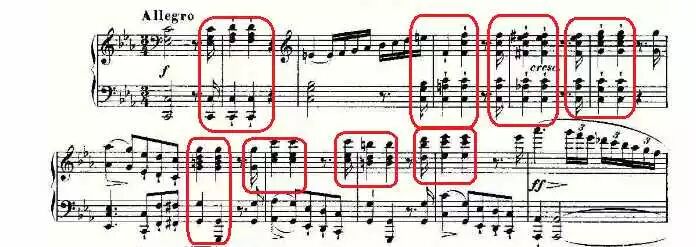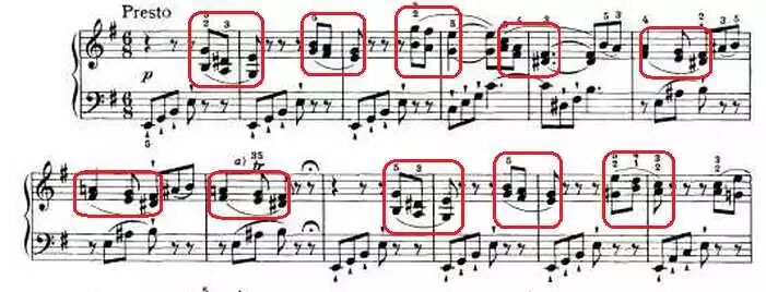 再比如,海顿E小调第34奏鸣曲,它的动机就是三个双音: