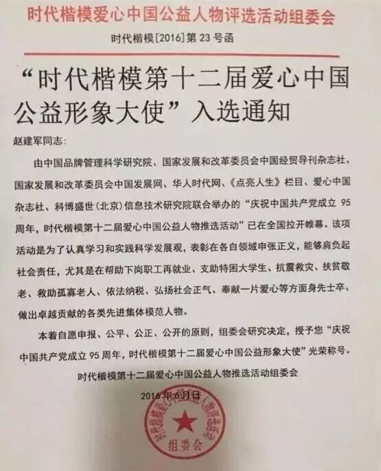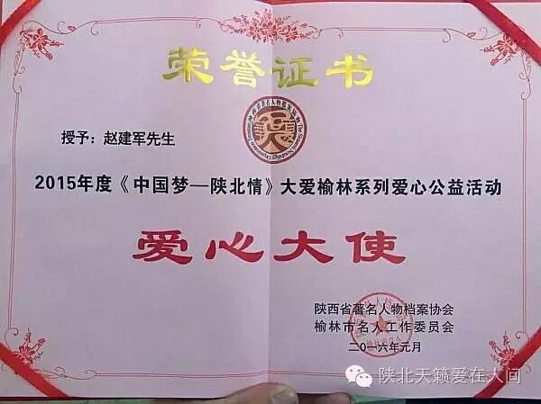 2015至2016年间连续被评为:陕北爱心大使和中国爱心形象大使