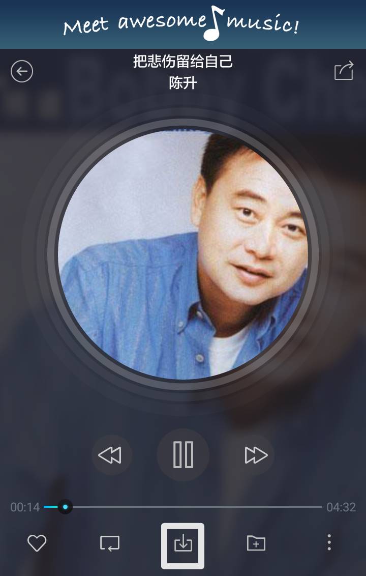 点击这个唱片图标,就会进入播放界面,点击专辑封面底部的下载符号即可下载歌曲: