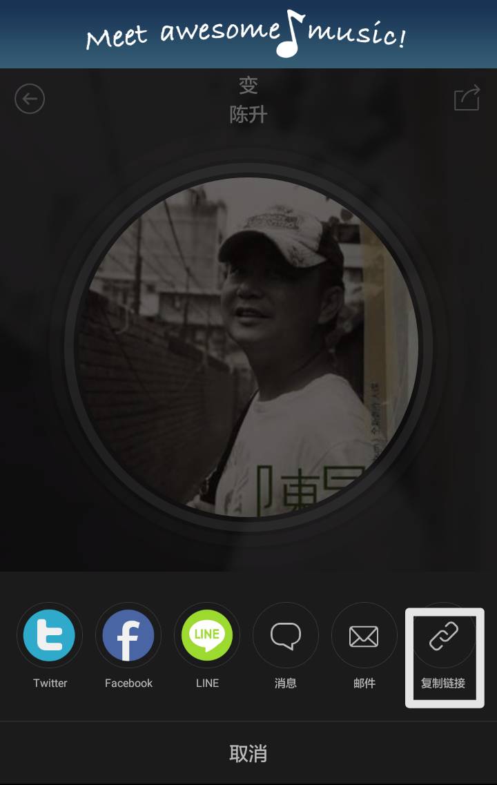 无论是已下载或未下载的歌曲,在播放页面点击右上角分享图标即可进行歌曲分享,推荐“复制链接”,这样在社交平台上分享链接,别人打开链接就能直接听歌啦: