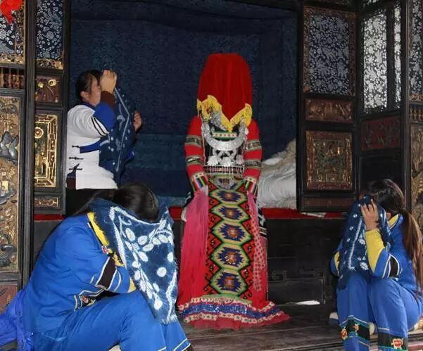 与此同时,土家族姑娘对包办婚姻不满而衍生的哭嫁现象就逐步表现出来并发展成内容丰富的文化现象。直至解放后,包办婚姻的现象才得到基本遏制。不管婚恋形式如何发展,土家族姑娘在出嫁前亦喜亦悲的挥泪恸哭却亘古不变。即使在民族交往频繁,文化渗透迅猛的今天,土家族姑娘在出嫁前也要向前来贺庆的亲朋好友献上一曲曲悲欢离合的哭嫁歌。