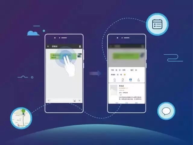 它能知道你跟朋友讨论的是什么热点,准备去哪个餐厅约会,只要双指长按你们在微信上的聊天内容,它会根据语义智能拆分字词并提供相应的搜索、地图等服务。