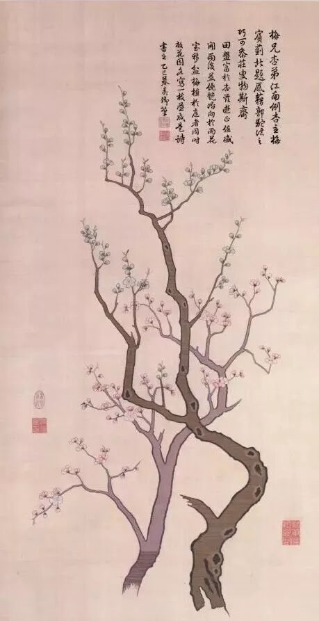 看到门口的杏树开花了,就大笔一挥,画出杏花粉中透红的神韵。