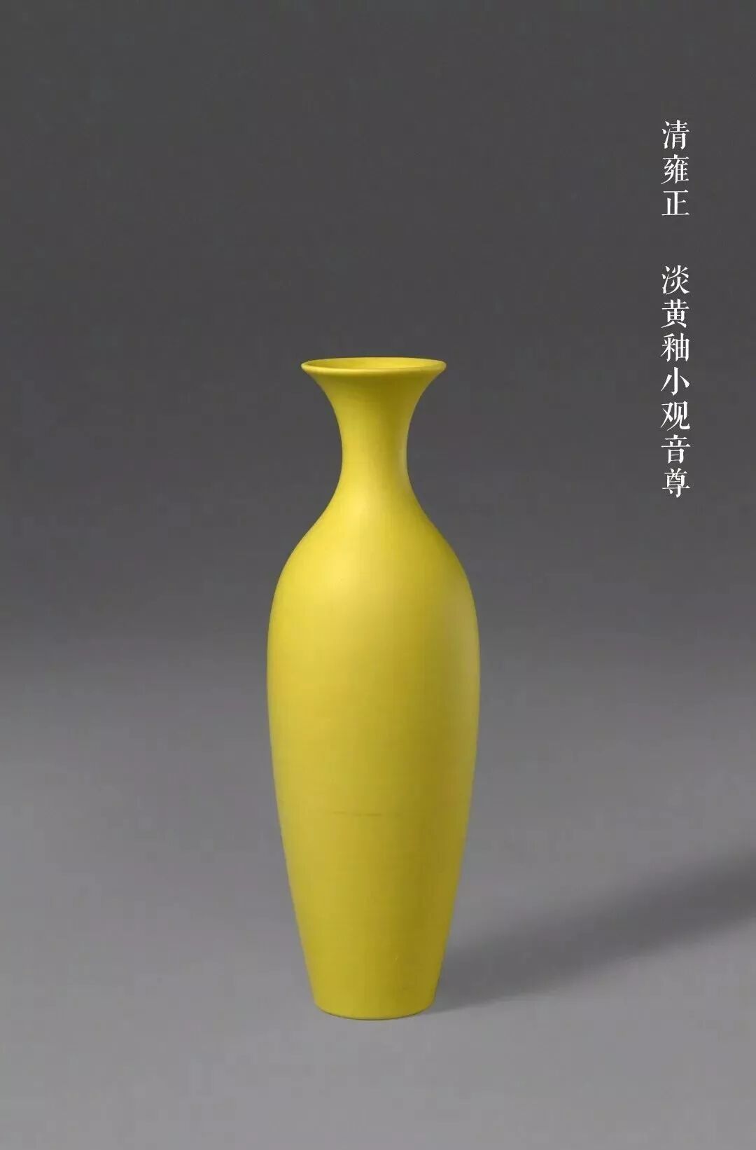 雍正淡黄釉瓷器的造型多为小件的瓶、盘、碗、杯、碟等,小巧的形体配以淡雅的釉色,颇显俊秀典雅。