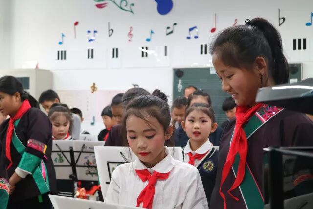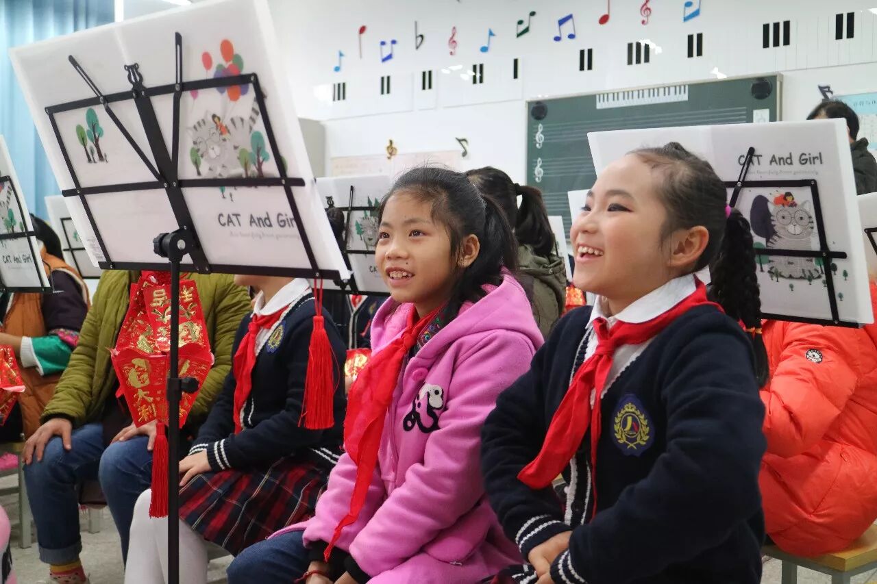音乐教室里柳东学子和来访的小伙伴共弹奏、共欢唱。友谊在美妙的琴声、歌声中升华!