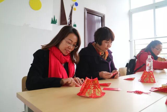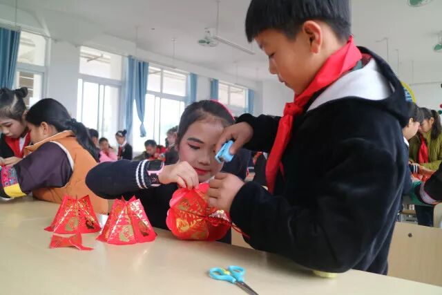 美术老师舒晴和小伙伴们一起制作灯笼,让喜庆溢满校园。