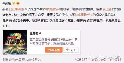 《我是歌手》孙楠决赛中退赛!公开道歉连用4个“请原谅”,一起来看看!