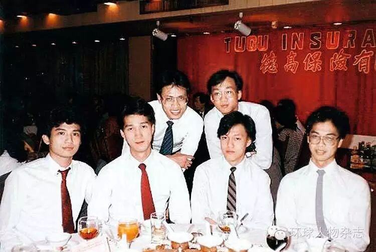 上世纪80年代,梁翘柏(前排右二)与黄家驹(后排右)在同一保险机构工作时的合影。