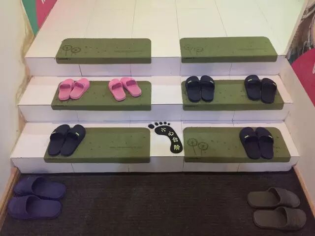他们校区一进门就要换专门的鞋,或者套鞋套,去卫生间又要换一道鞋,干湿分离做的很贴心,中心卫生非常干净。