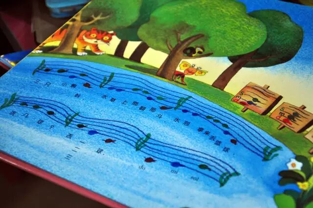 他们家教材也是萌萌哒!各种素材都能变成音乐的元素。看蝌蚪变成了音符!小鸡小鸭小鹅小树都能变成音符!怪不得孩子在生活中也能很容易创作出歌曲。