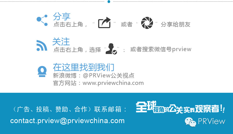 PRView作为一家具有全球视野的前沿商业传播媒体,致力于整合海内外的广告公关案例资源,搭建学界与业界的沟通社区。我们服务那些希望在国际市场获得成功的品牌主和国际公关、广告、营销代理商,以及希望与海外的公关学者及学生进行交流访问的研究机构和院校。