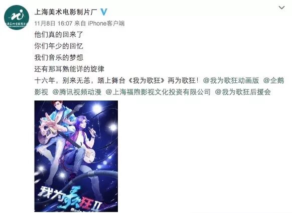 11月8日,官方宣布重制!更是放出了《我为歌狂2》的全新海报。
