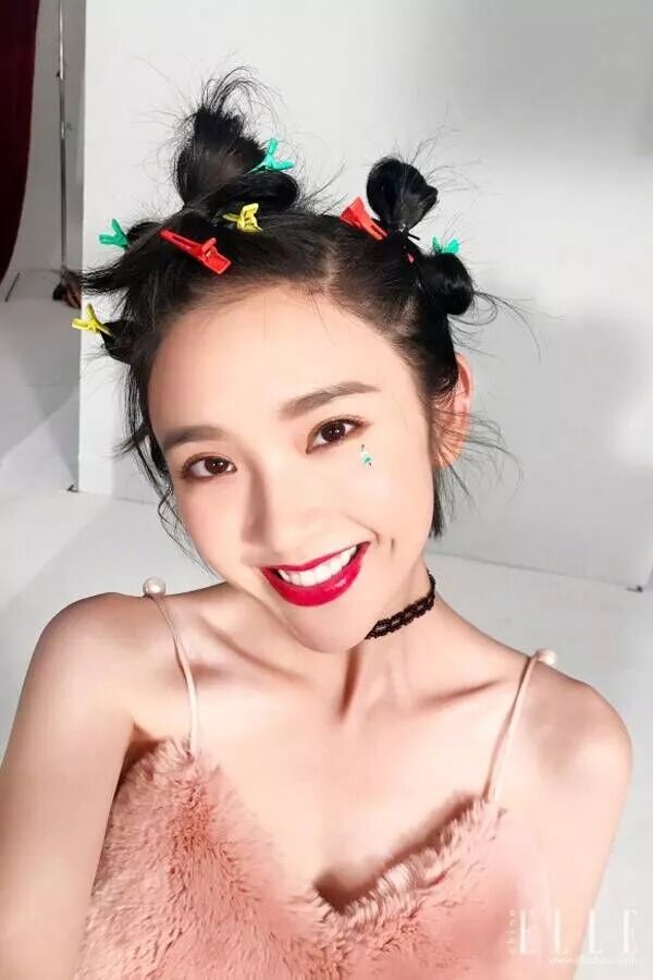 ▲现实中爱笑的唐艺昕也曾尝试过这样的 “哪吒头”造型,用发夹固定出了很多小鬏鬏,更显古灵精怪。