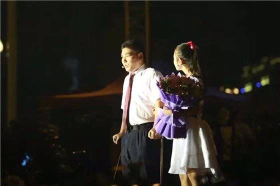 时超老师发来的比赛视频显示,比赛前,首先是玉屏全县优秀教师代表带领全场宣誓,内容是《贵州教师誓词》。宣誓完毕,比赛开始。第一个演唱的参赛队就是作为宣誓背景已经肃立台上的玉屏民族中学教师合唱团。他们对作品不仅加了新的深情并茂的朗诵词,并且还有一个特别的创意设计,那就是在开始的前奏声中,一位拄着双拐的老教师在一位女学生的搀扶下登场亮相,师生二人深情对白,以具体的形象展示,很好的诠释了歌曲的思想内容。这一切用心的创意和设计,都为她们的比赛增添了光彩,增加了分数。《教师颂》能够被搬上贵州省玉屏侗族自治县县委、县政府主办的该县第32届教师合唱比赛的舞台,表明我市作曲家的原创音乐作品正在渐渐受到外地社会关注,这是我市音乐界的骄傲!
