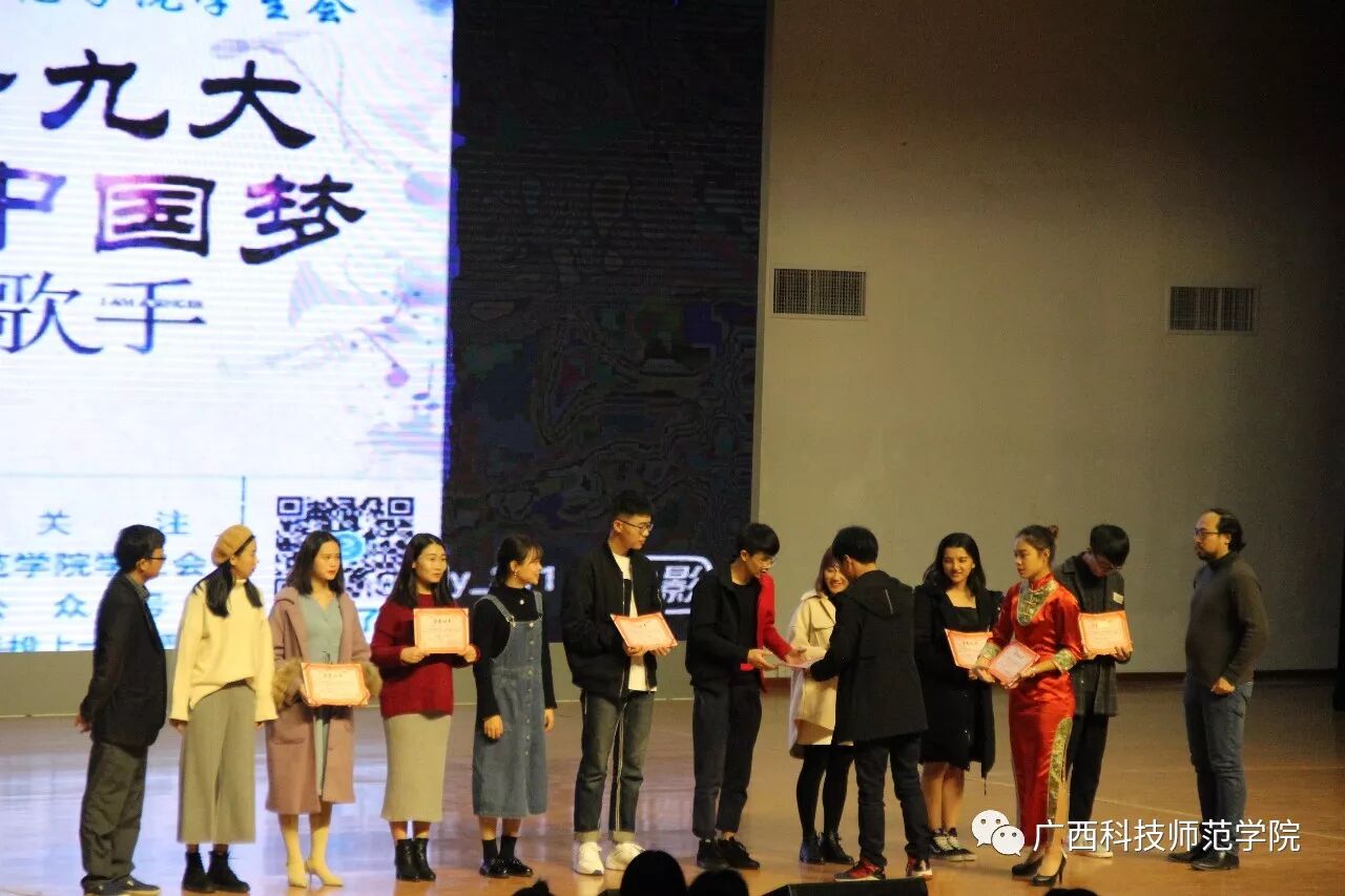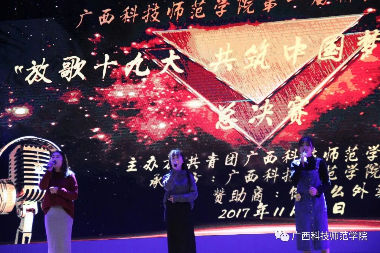 11月30日晚,我校首届科技文化艺术节之"放歌十九大,共筑中国梦"我是歌手总决赛在来宾校区大礼堂举行。现场灯光闪耀,参赛选手歌声美妙,观众的尖叫声不断。同学们想知道我是歌手总决赛的最佳唱将都有谁吗?