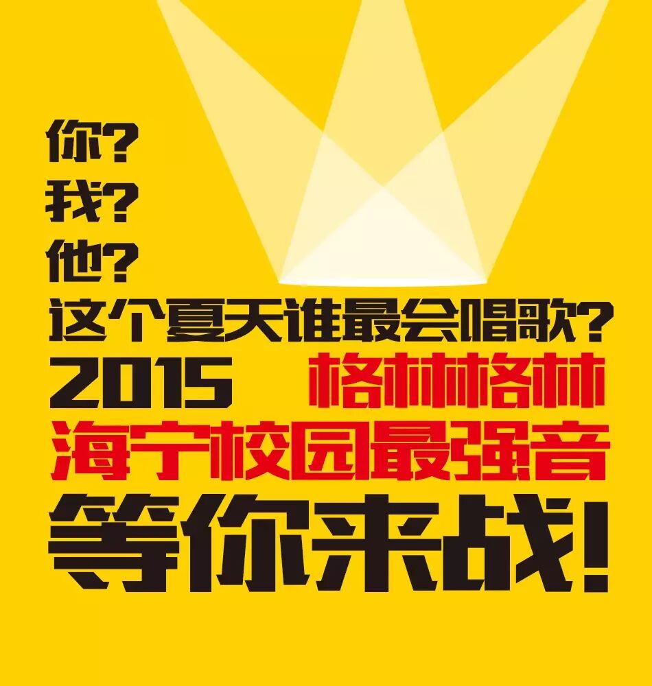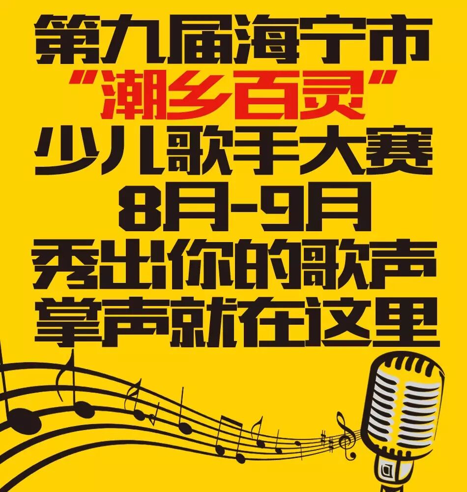 今年8月至9月,我市将迎来“格林格林”杯2015寻找校园最强音第九届海宁市“潮乡百灵”少儿歌手大赛。