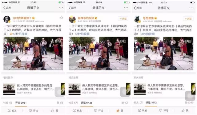 这段视频,是由波兰裔印第安音乐家Alexandro亚历桑德罗在街头的演出,而这段音乐则是「最后的莫西干人」的电影原声,电影中壮美的北美山脉配合着这样的音乐瞬间抓住了观众的心。而这段视频一出现在微博上,也得到很多大V的转发。