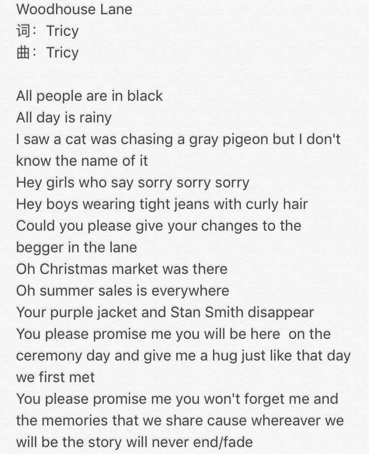 ppps,代诗琪昨天发了一张包括Woodhouse Lane在内的EP 利兹党去网易云音乐称霸评论区吧。对了 还有她的微博:Tricy代诗琪 去关注一下