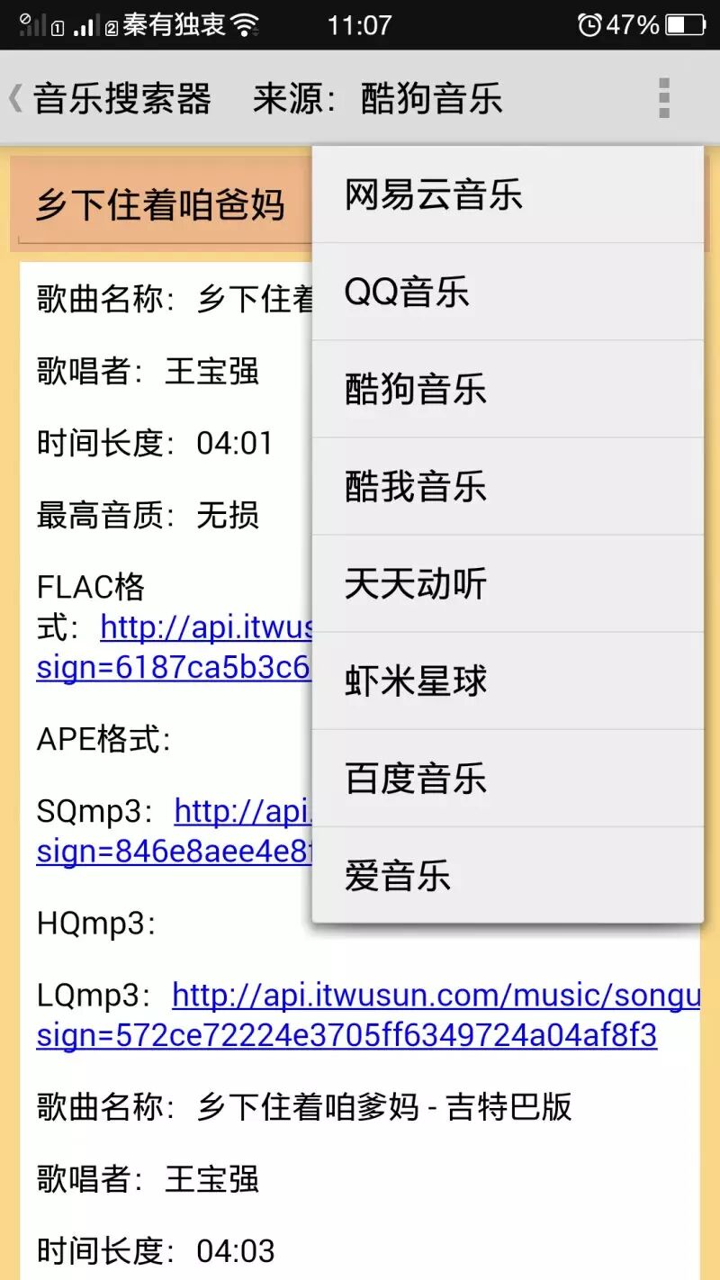 音乐搜索器 Ver.0.0.5 解析付费歌曲免费下载音乐?支持解析音乐论坛?*** 网易音乐✌*** QQ音乐✌*** 酷狗音乐✌*** 酷我音乐✌*** 天天动听✌*** 虾米星球✌*** 百度音乐✌*** 爱音乐✌☆截图预览☆