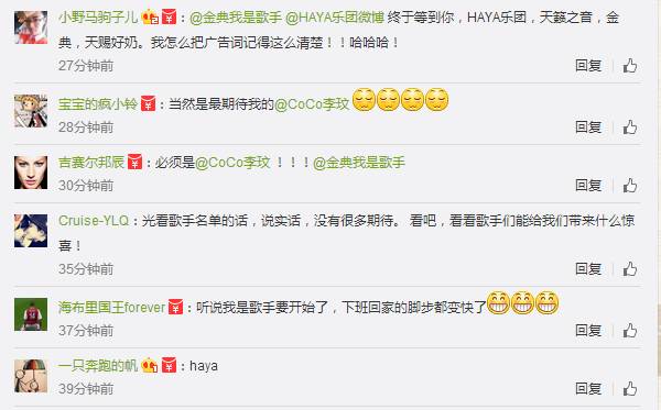 除了邀请实力强劲的歌手嘉宾们,第四季《我是歌手》的阵容搭配不再一味找熟面孔,而是各种可能性的组合,这其中充满了不确定因素,如果前三届的“黑马担当”分别被黄绮珊、邓紫棋、A-Lin承担了的话,这一届的“黑马”人选有点多,HAYA乐团、徐佳莹、黄致列都有可能因为这次比赛,在国内打开商业市场的大门。