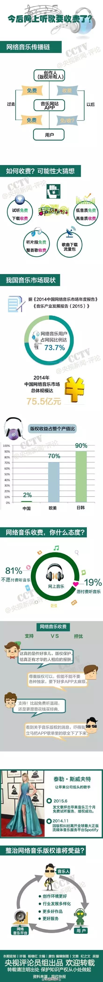 【未经授权的音乐都要下线!以后听歌要收费啦?】国家版权局日前发布通知,责令各网络音乐服务商停止未经授权传播音乐作品,7月31日前将未经授权的作品全部下线。此后仍继续传播将从严查处。对于下载网络音乐是否要付费,国家版权局回应,服务商可用多种方式收回成本,不一定要下载收费。