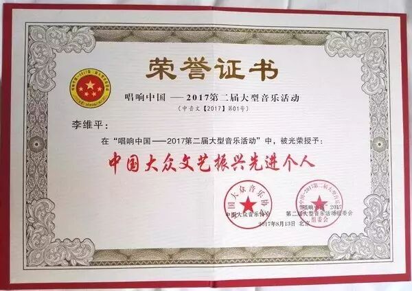 苏勇、汪昭鹤、李维平被分别授予“中国大众文艺振兴先进个人”荣誉称号。