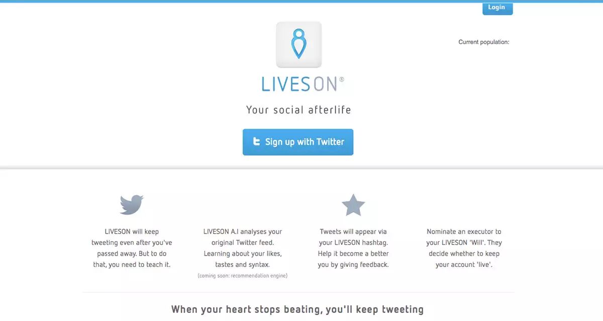 LIVESON 为用户提供过世后继续经营其 Twitter 的服务。使用其服务的客户即便已经去世,在 Twitter 上也仿佛继续存活着。